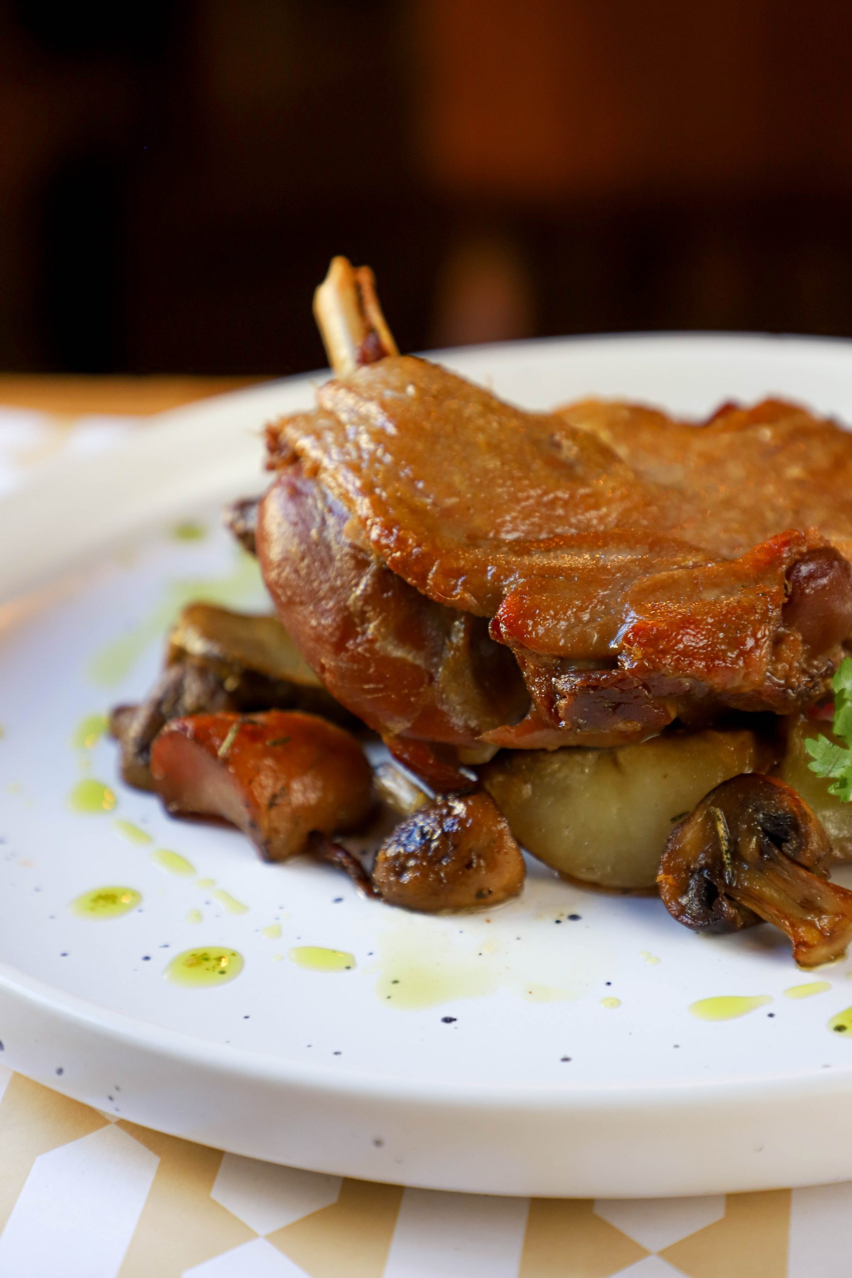 Confit de Canard: Peito de pato preparado à perfeição, servido com acompanhamentos deliciosos.