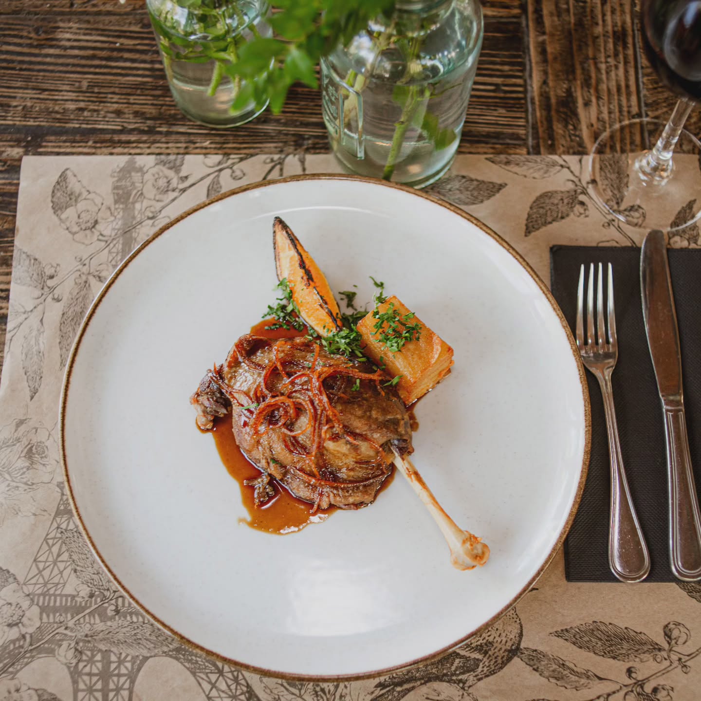 O cardápio reflete o cuidado com a gastronomia de inspiração francesa, mesclada aos sabores locais. Os pratos são preparados com ingredientes frescos e técnicas sofisticadas, resultando em criações que surpreendem o paladar. Entre os destaques, estão: