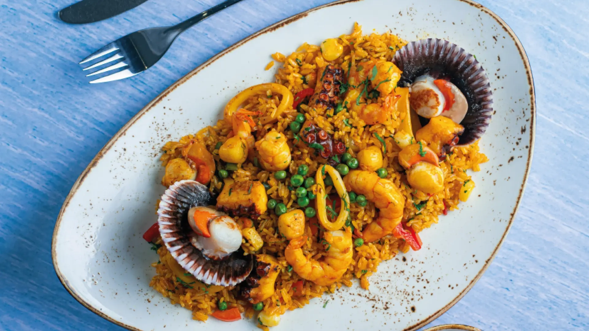 Chaufa de Mariscos: Arroz frito com frutos do mar e temperos típicos do Peru.